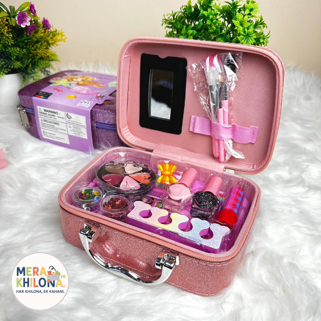 A charming zipper bag that’s more than just storage — filled with pretend makeup and perfect for your little princess’s stylish playtime!