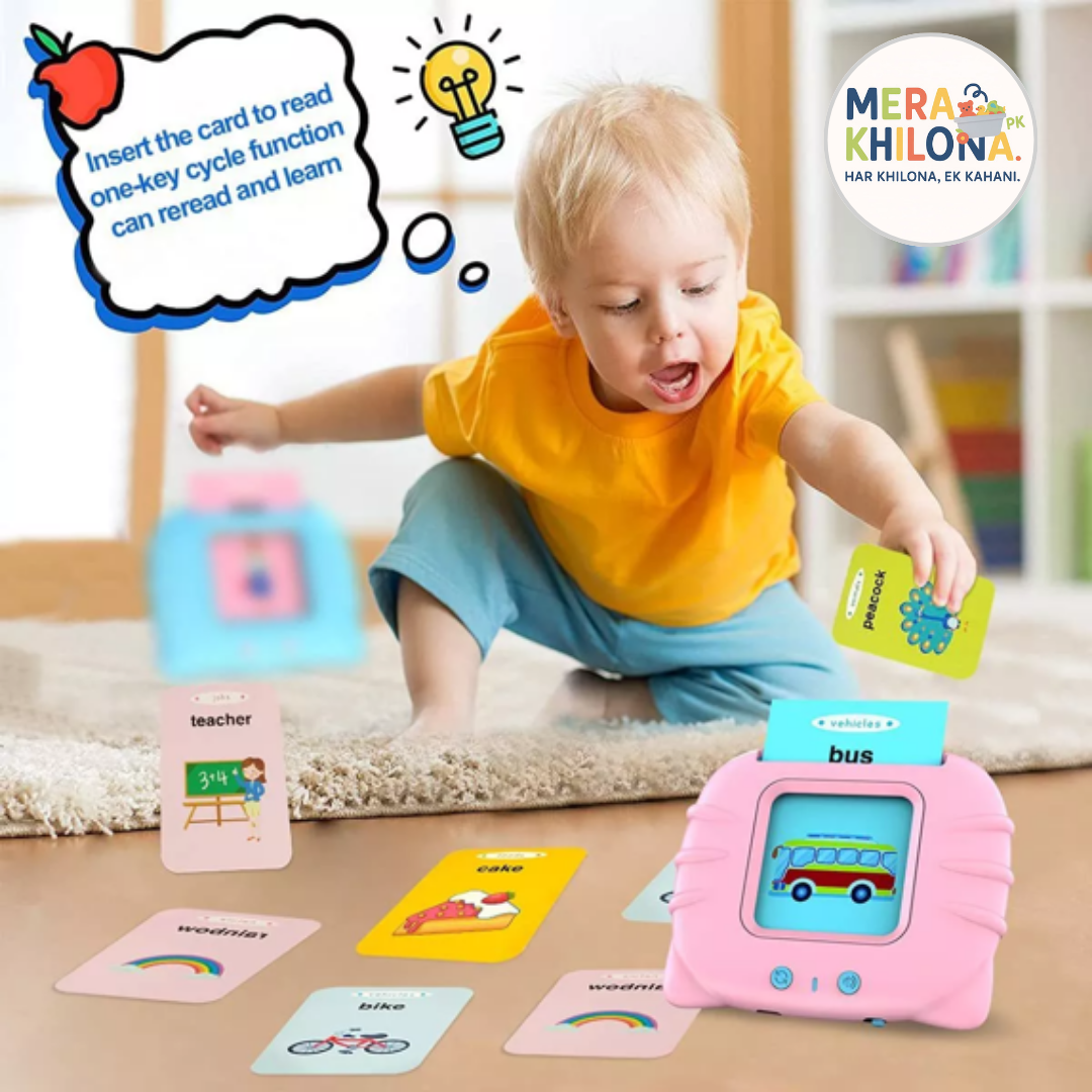 An interactive talking toy that brings learning to life — insert a card, hear the word, and listen to the sound!